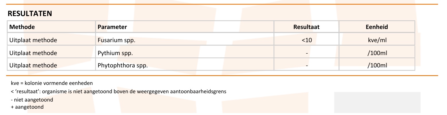 Zo tonen praktijktesten aan dat een combinatie van onze oplossingen met een lage hoeveelheid waterstofperoxide, leidt tot effectieve verwijdering van pathogenen uit gietwater.